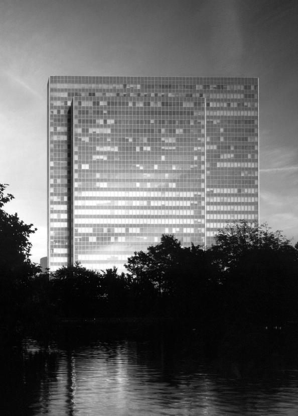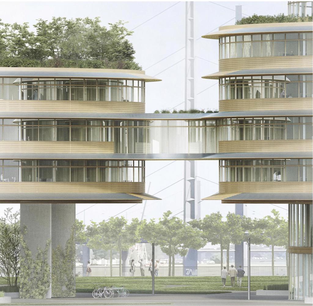 Die undatierte Computergrafik zeigt den Entwurf für die Erweiterung des nordrhein-westfälischen Landtags des Leipziger Architektenbüros Schulz und Schulz.